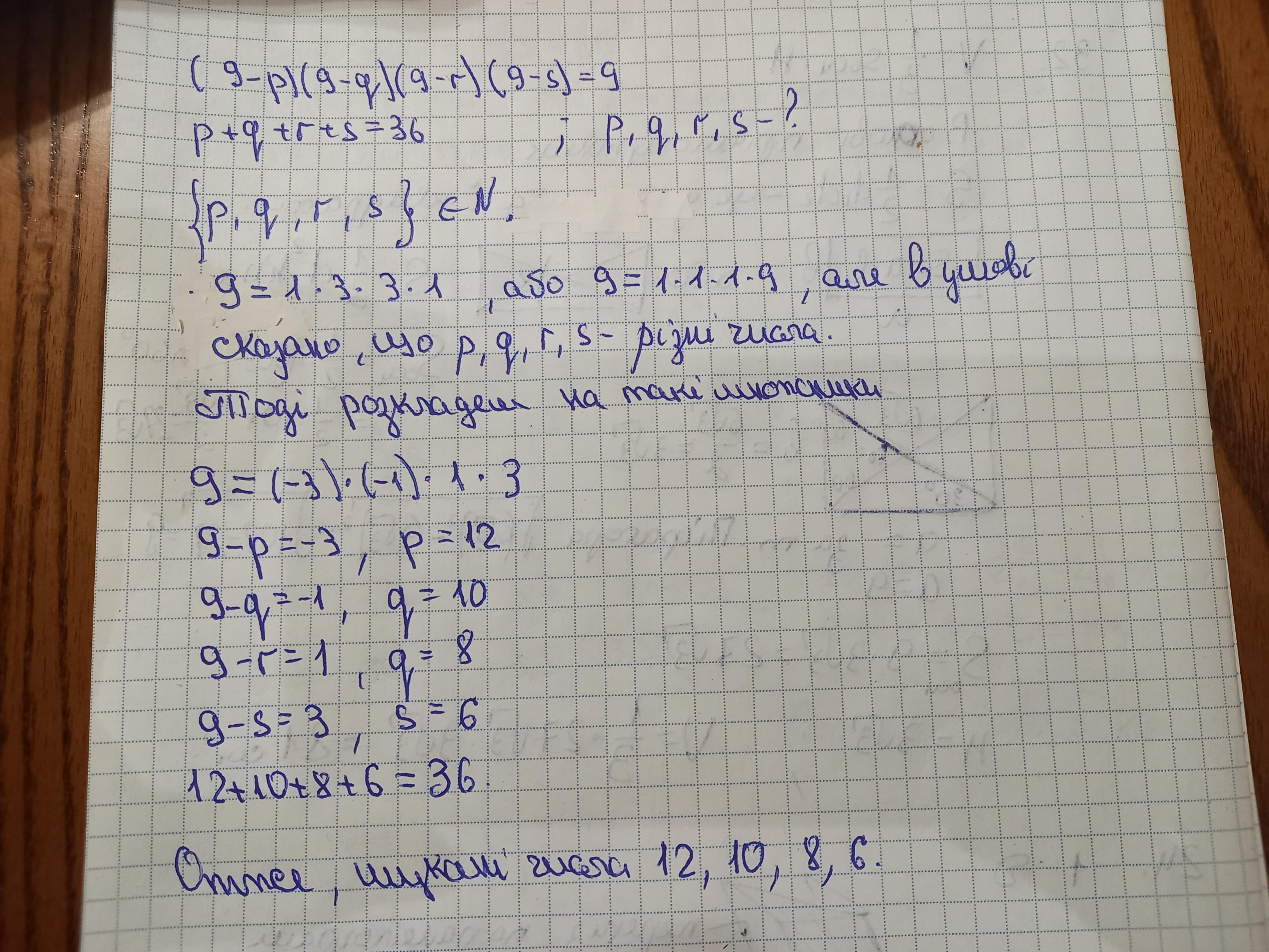 Чотири різні натуральні числа р, q, r, s зняють рівність