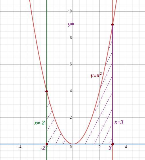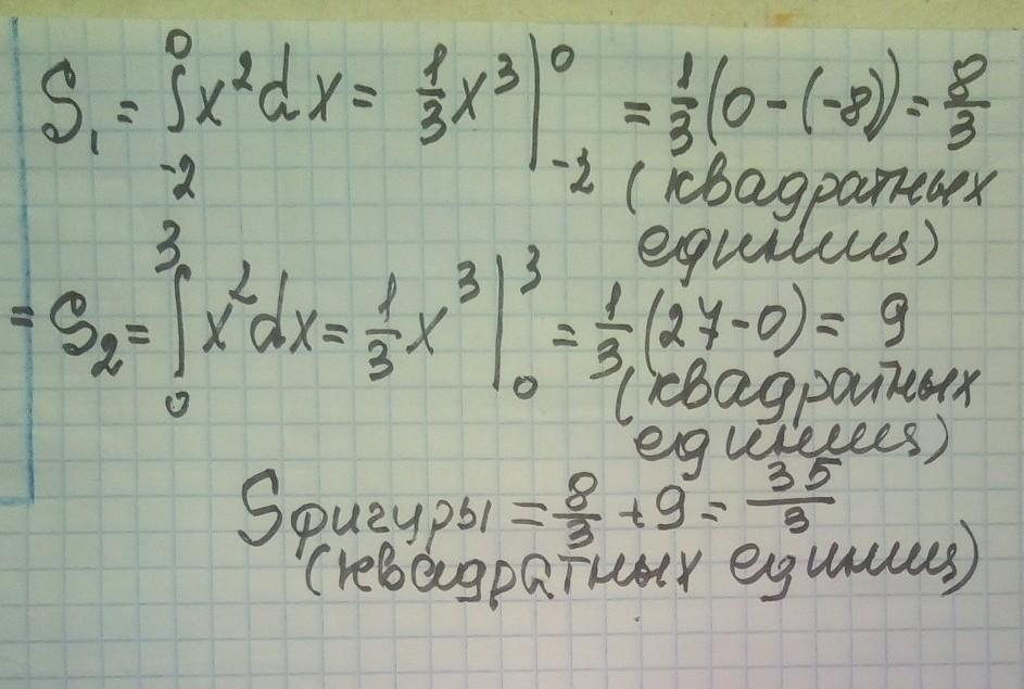 Вычислить площадь фигуры (предварительно сделав рисунок) ограниченной линиями y=x² y=0 x=-2 x=3