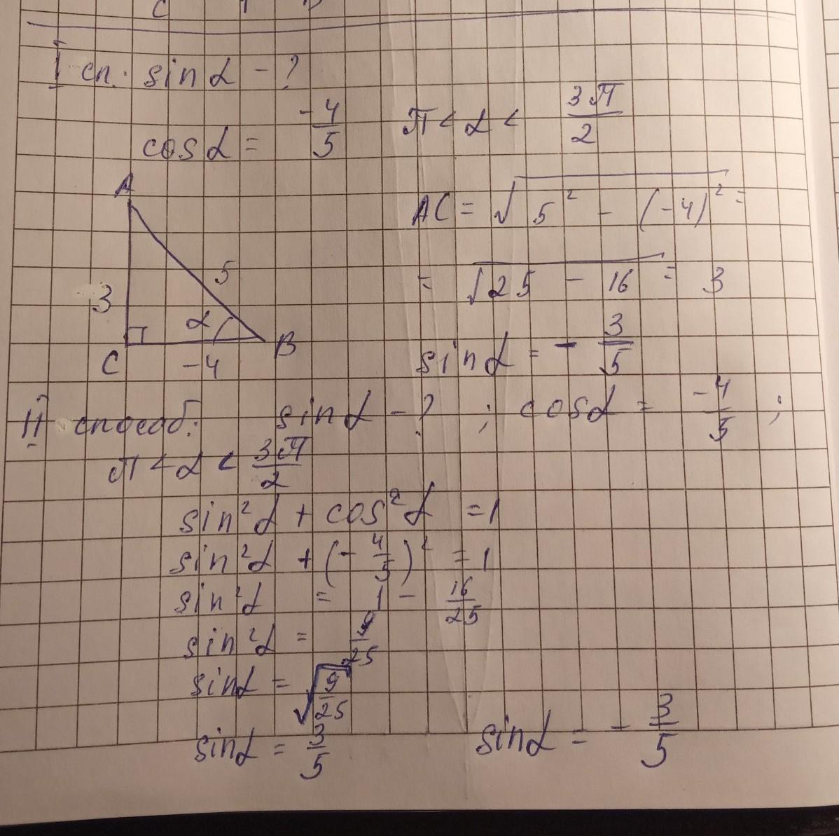 я решила и треугольником, и через основное тригонометрическое тождество, потому что не знаю как вас учили.