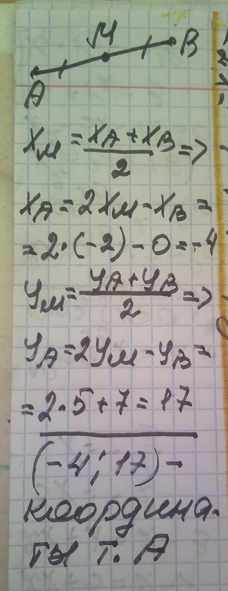 -2 = (Xa + 0)/2 5 = (Ya + (-7))/2