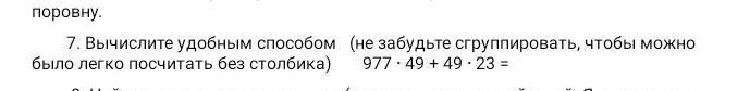 Пошаговое объяснение:977 × 49 + 49 × 23 = 49 × (977 + 23) = 49 × 1000 = 49000