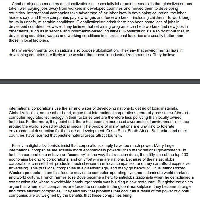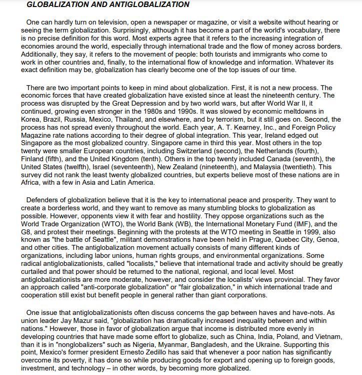 - "One issue that antiglobalizationists often discuss concerns the gap between haves and have-nots."