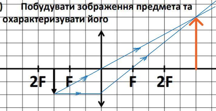Відповідь: зображення буде дійсним, збільшеним, перевернутим.