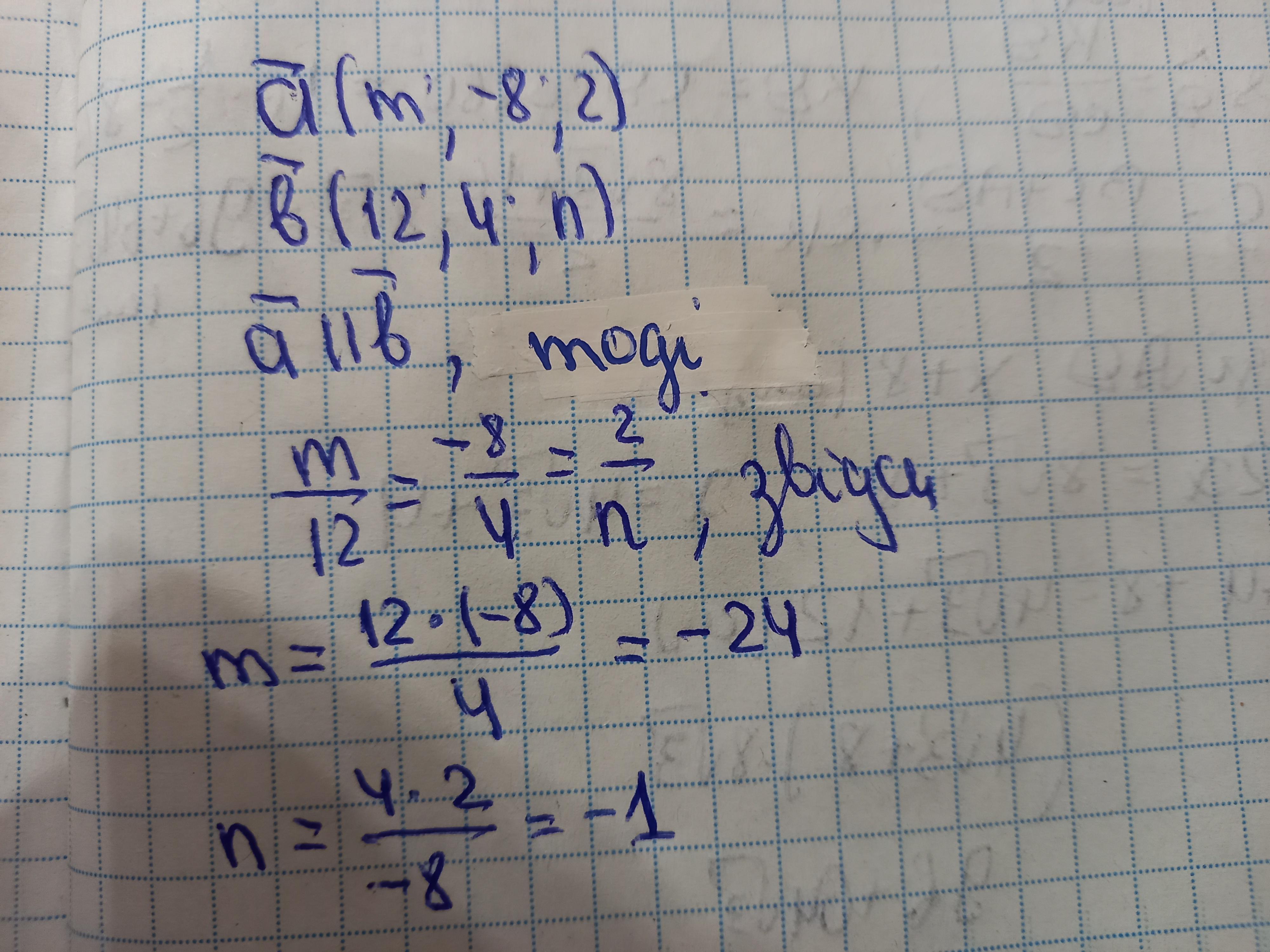 знайдіть значення m і n при яких наступні вектори а(m; -8;2) і b (12; 4; n)