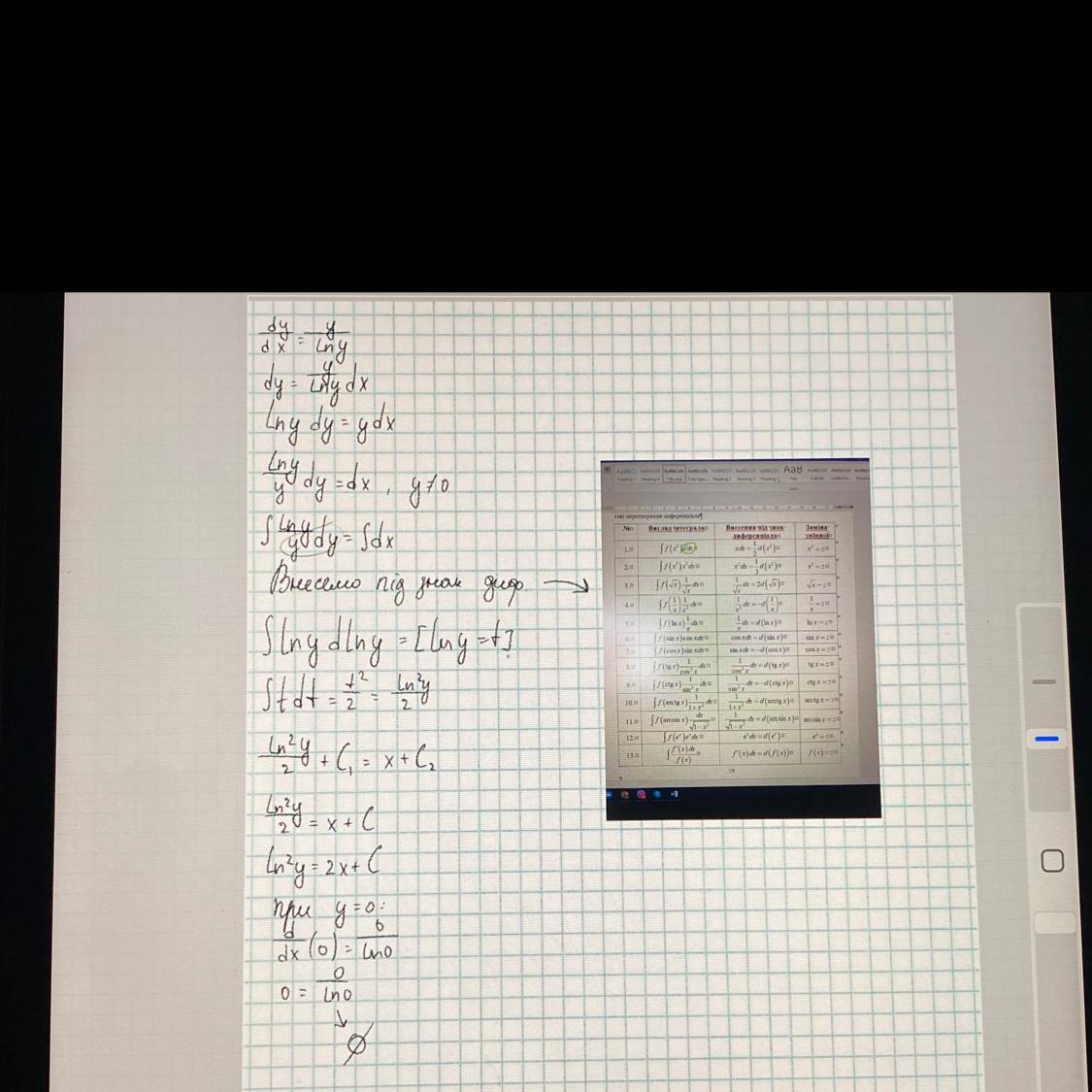 (lnydy)/y=dx