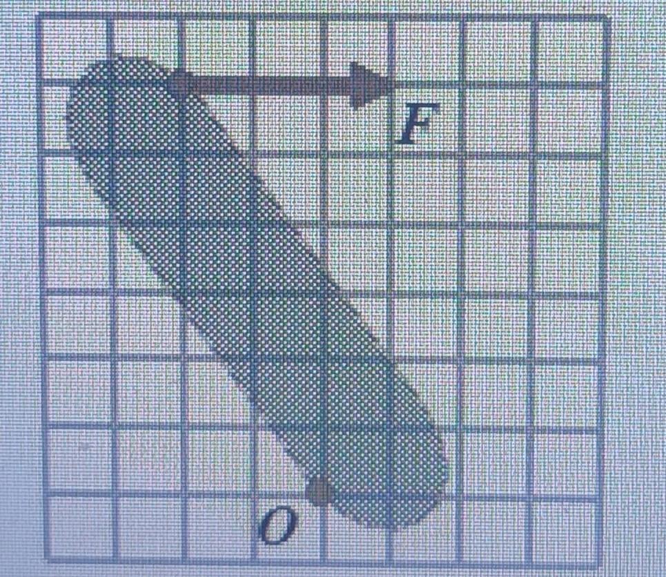 Чому дорівнює плече сили F яка приложена до тіла (дивись рисунок), відносно точки О? Розміри клітинки 10х10 см.
