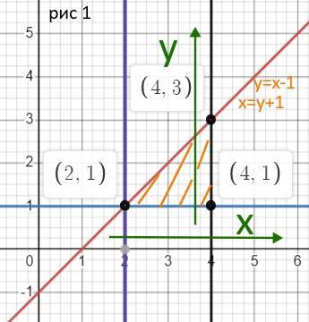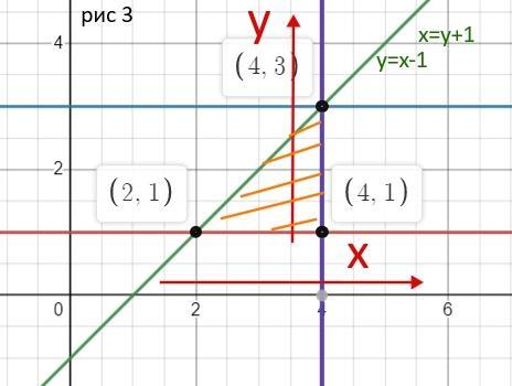 2 ≤ x ≤ 4; 1 ≤ y ≤x-1