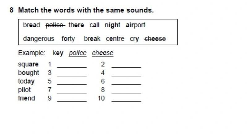 Ответ: 1 bread 2 there 3 call 4 forty 5 airport 6 dangerous 7 night 8 cry 9 break 10 centre