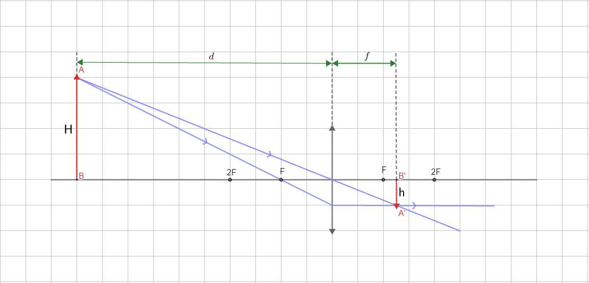 Линейное увеличение линзы: , где H - высота предмета, h - высота изображения предмета.