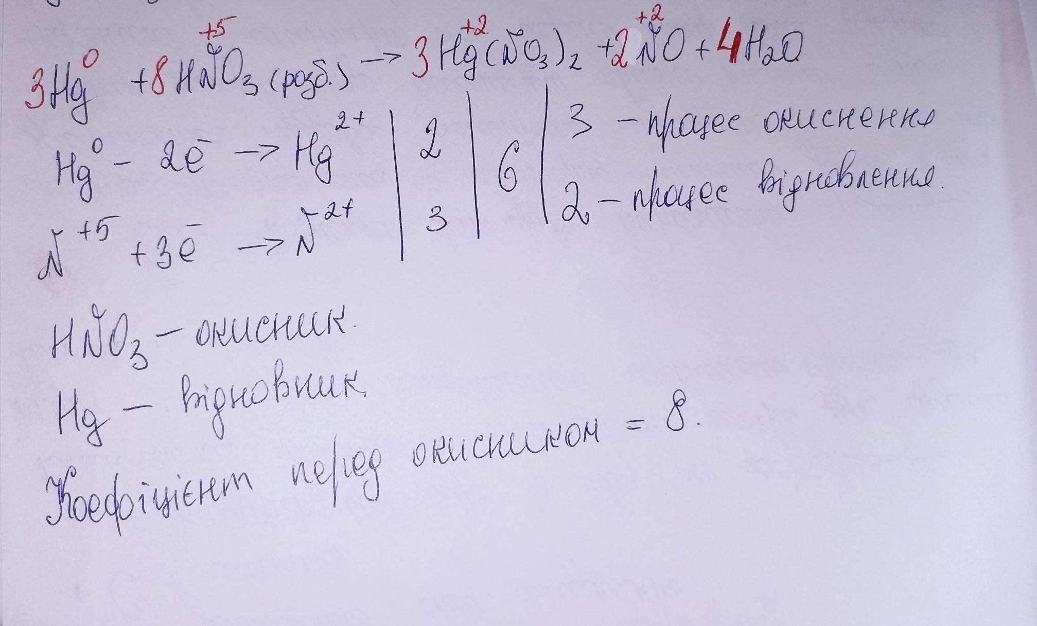 коефіцієнт перед окисником: Hg + HNO 3 (розв .) → …