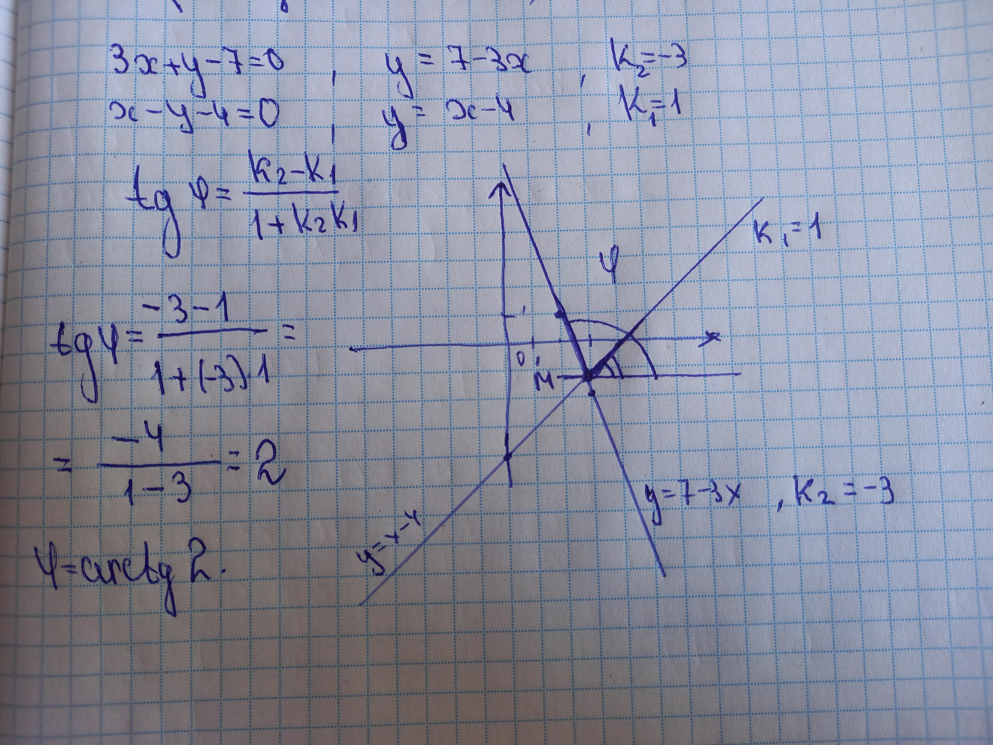 Формула тангенса угла между прямыми: