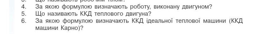 5) Отношение совершённой полезной работы двигателя к энергии, полученной от нагревателя, называют коэффициентом полезного действия теплового двигателя. КПД теплового двигателя определяют по формуле: КПД = A n Q 1 или КПД = Q 1 − Q 2 Q 1 ⋅ 100 % .