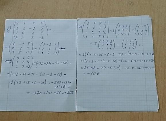 Значение определителя матрицы равно сумме произведений элементов некоторой строки (столбца) на их алгебраические дополнения.