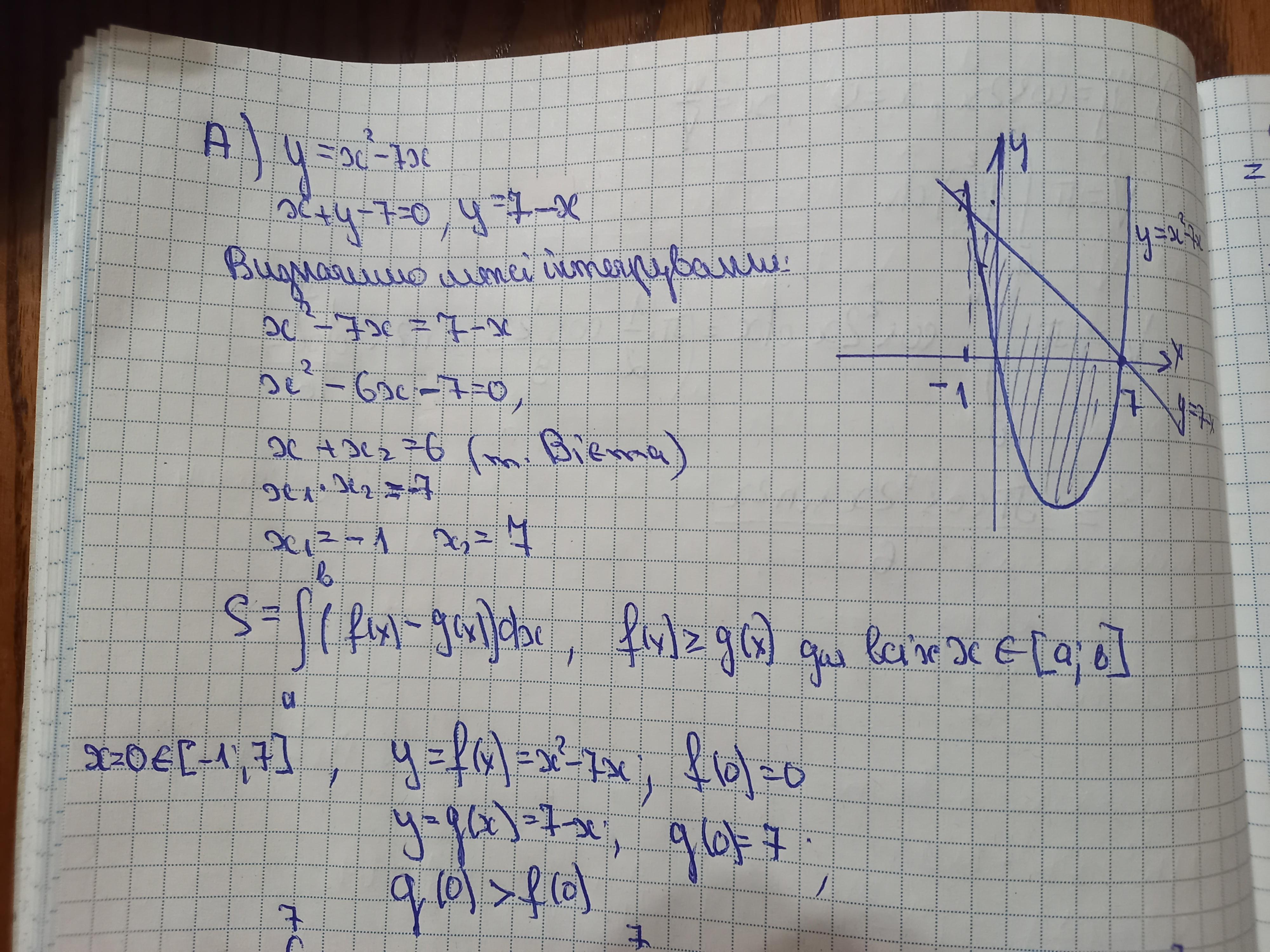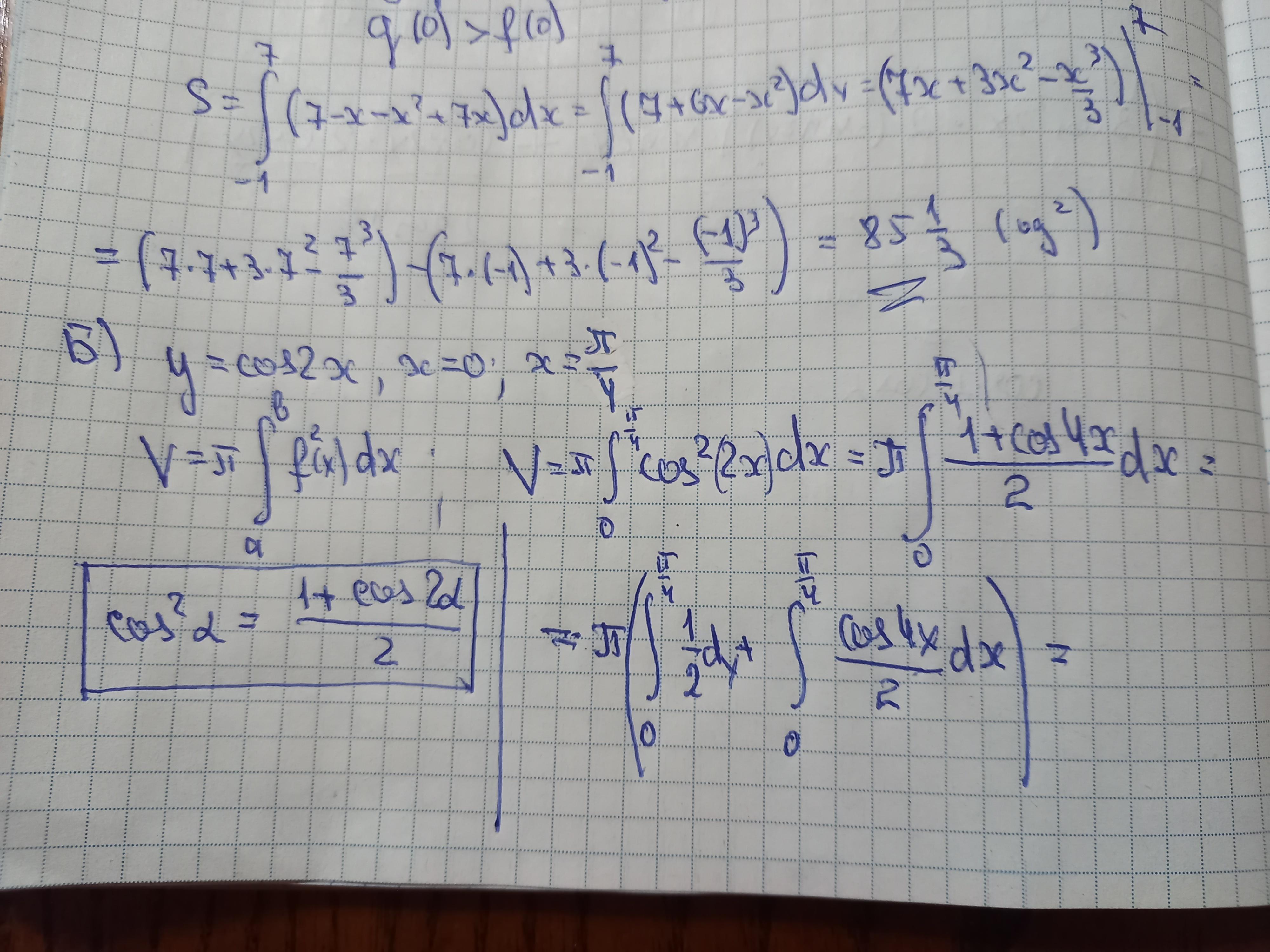 А) y= x2-7x, x+y-7=0 ; Б) y=cos2x, x=0, x=