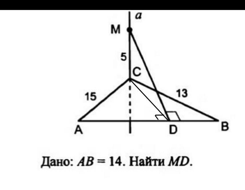 МD=√(MC²+CD²)=√(5²+12²)=13см