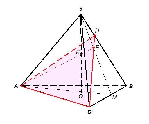 В тетраэдре SABC точка О лежит в плоскости (АВС), а тоска К на отрезке SO.