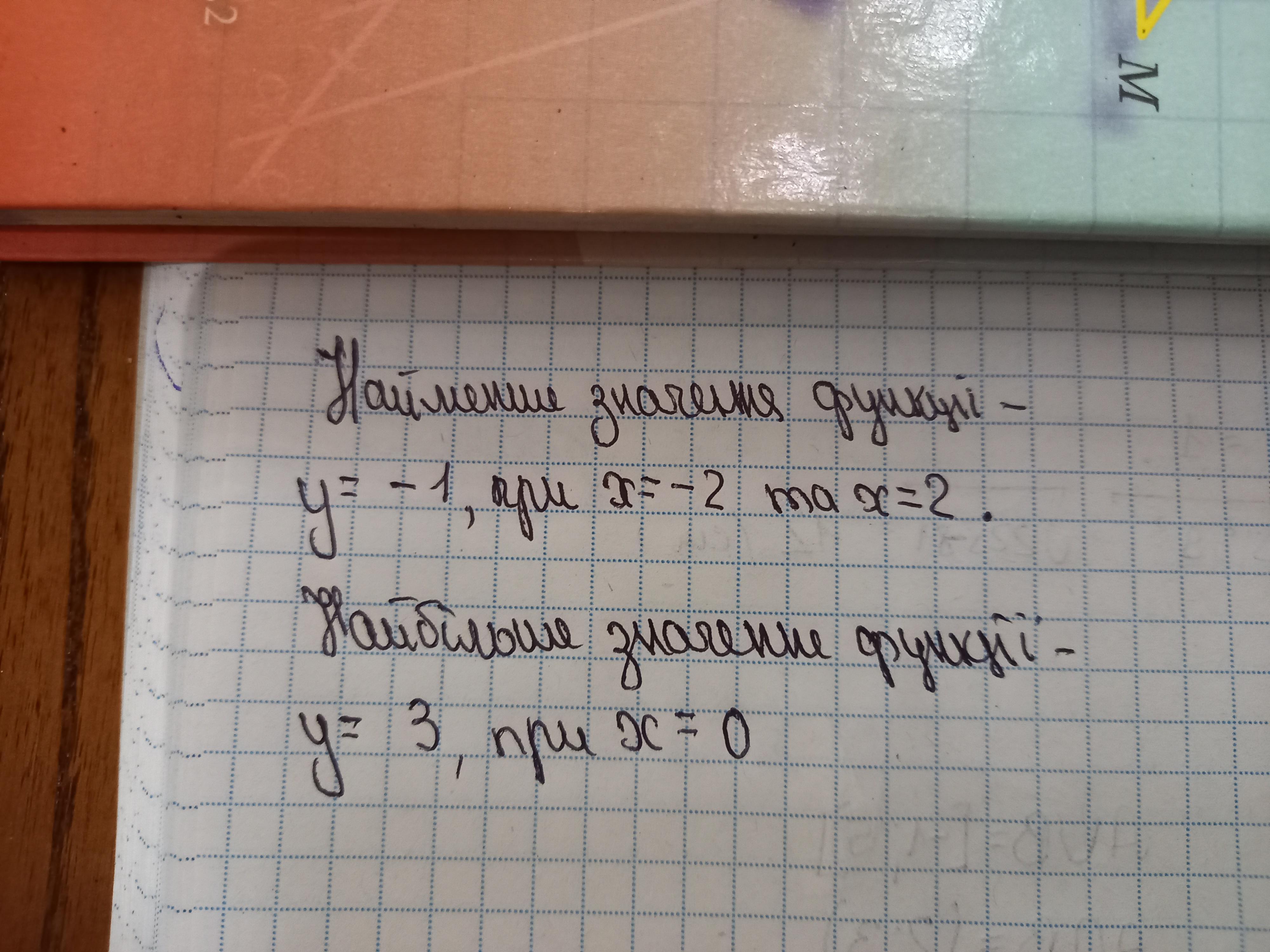 Найменше значення функції: y=-1 при х=-2 та х=2;