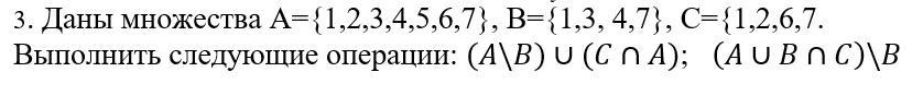 (A\B)∪(C∩A)={1;2;5;6;7}