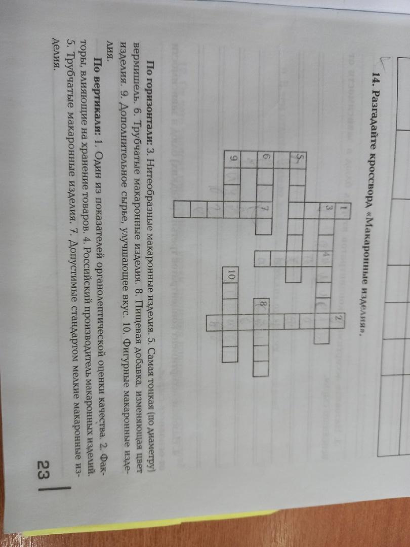 Кроссворд "Макаронные изделия ":