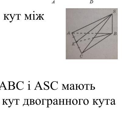Рівнобедрені трикутники ABC і ASC мають спільну основу, Назвіть лінійний кут двогранного кута