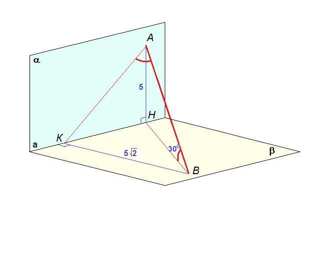 на 5√2см. Знайдіть кут між прямою AB і площиною а, якщо кут між прямою AB і
