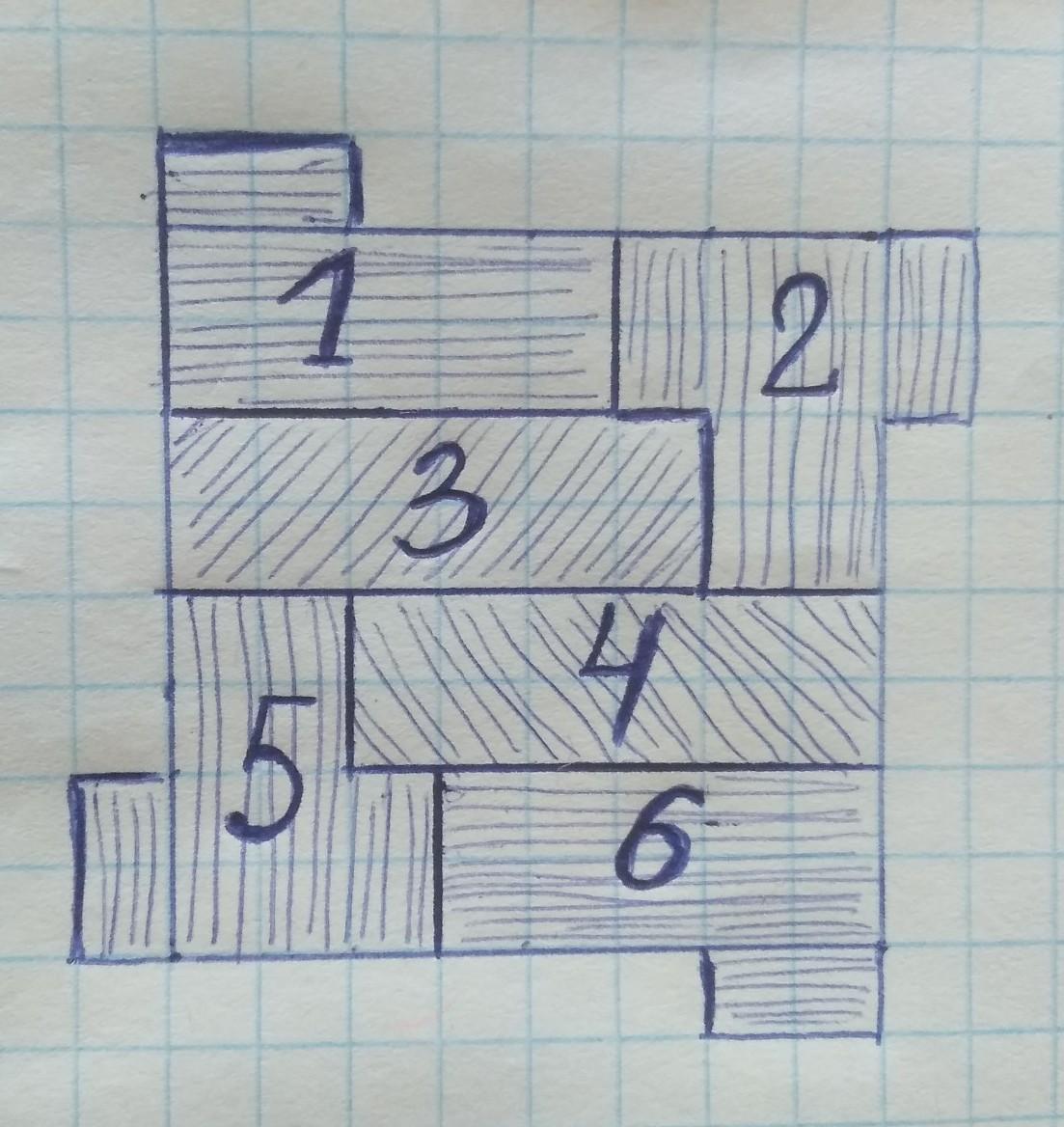Данная фигура состоит из 72 клеточек. Ее нужно разрезать на 6 равных частей. Значит, в одной части будет: 72 : 6 = 12 клеточек.