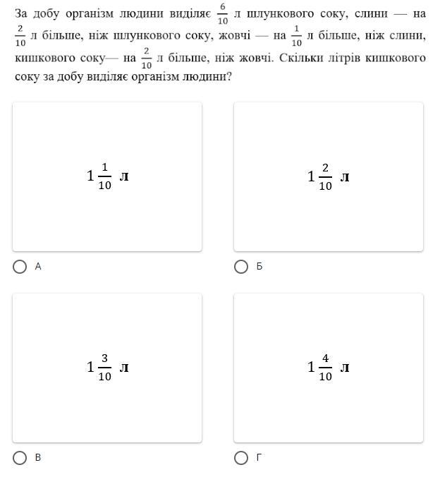 9/10 + 2/10 = 1 1/10 (л) кишкового соку