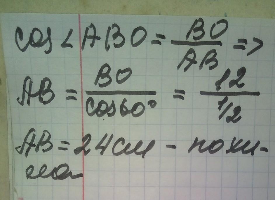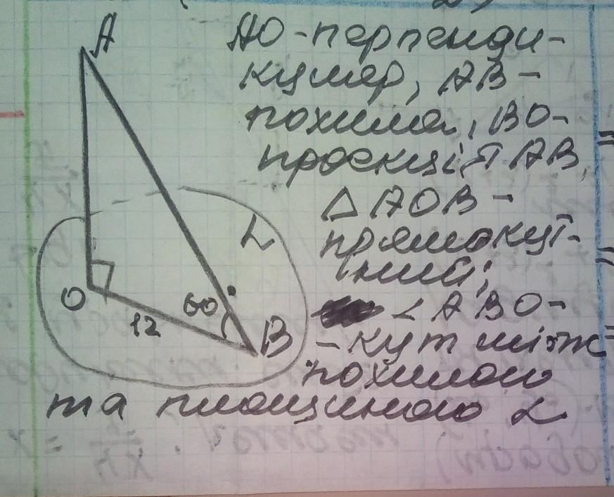 Завдання 5: Похила утворює з площиною кут 60°. Знайдіть цю похилу, якщо проекція похилоï дорівнює 12 см.