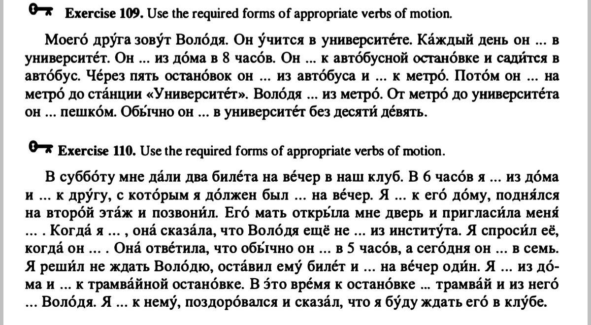 Моего друга зовут Володя. Он учится в университете. Каждый день он ходит в университет. Он выходит из дома в 8 часов. Он идёт к автобусной остановке и садится в автобус. Через пять остановок он выходит из автобуса и идёт к метро. Потом он едет на метро до станции "Университет". Володя выходит из метро. От метро до университета он идёт пешком. Обычно он приходит в университет без десяти девять.
