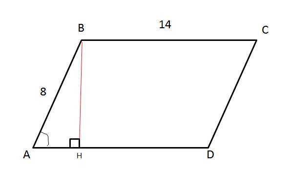 стороны параллелограмма равны 8 см и 14 см а один из углов 30градусов найдите площадь параллелограмма НУЖНО С ЧЕРТЕЖОМ, иначе не понятно будет как её решили а мне нужно именно понять