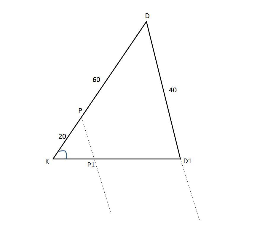 треугольники KPP1, KDD1 равны (2 угла)