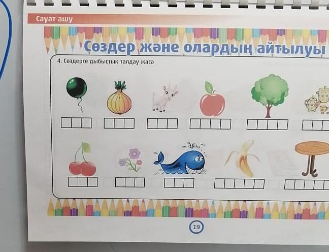 1.Шарик 2. лук 3. коза 4. яблоко 5. дерево 6.посуда 7. вишня 9. цветок 10.кит 11. банан 12. стол