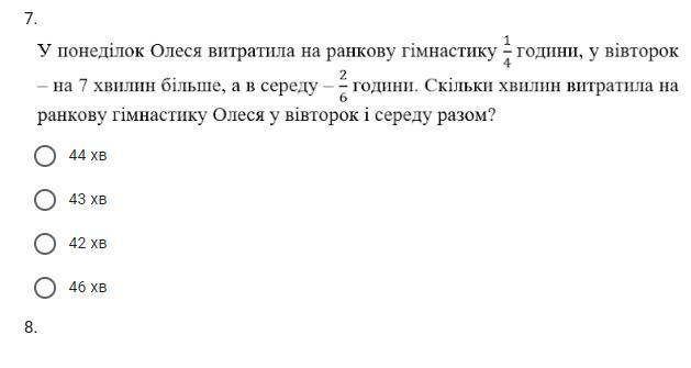 7. Понеділок - 1/4 від години (60хв) (60/4)= 15 хв