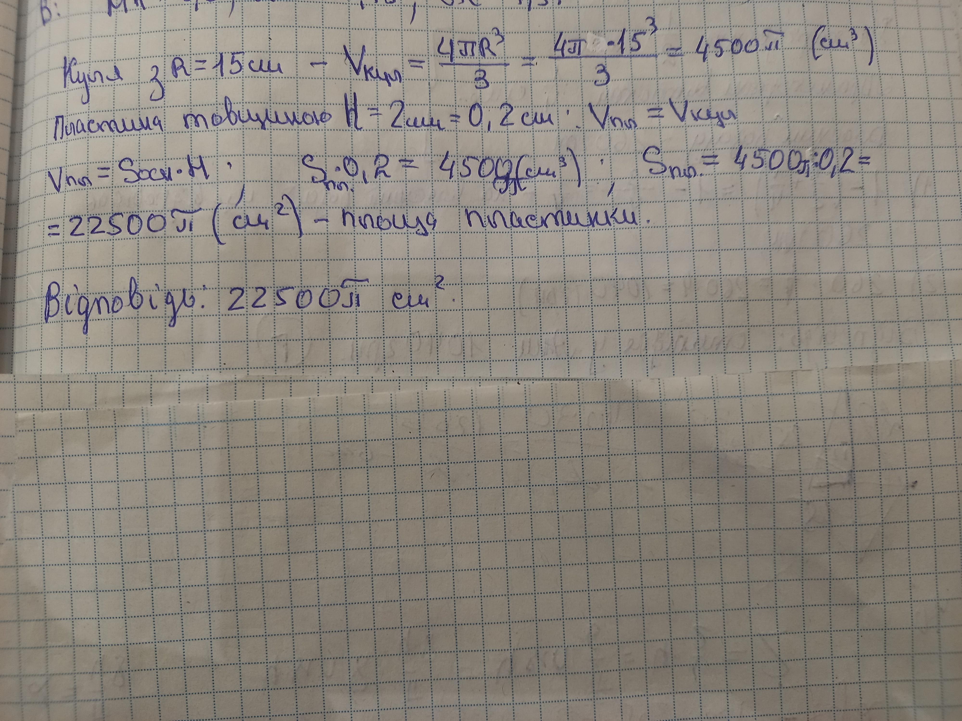 Свинцева куля радіусом R = 15 см розплющується в пластинку товщиною
