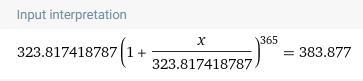 делишь на левую залупу, извлекаешь корень 365 степени, отнимаешь 1 и умножаешь на 323,............ и все