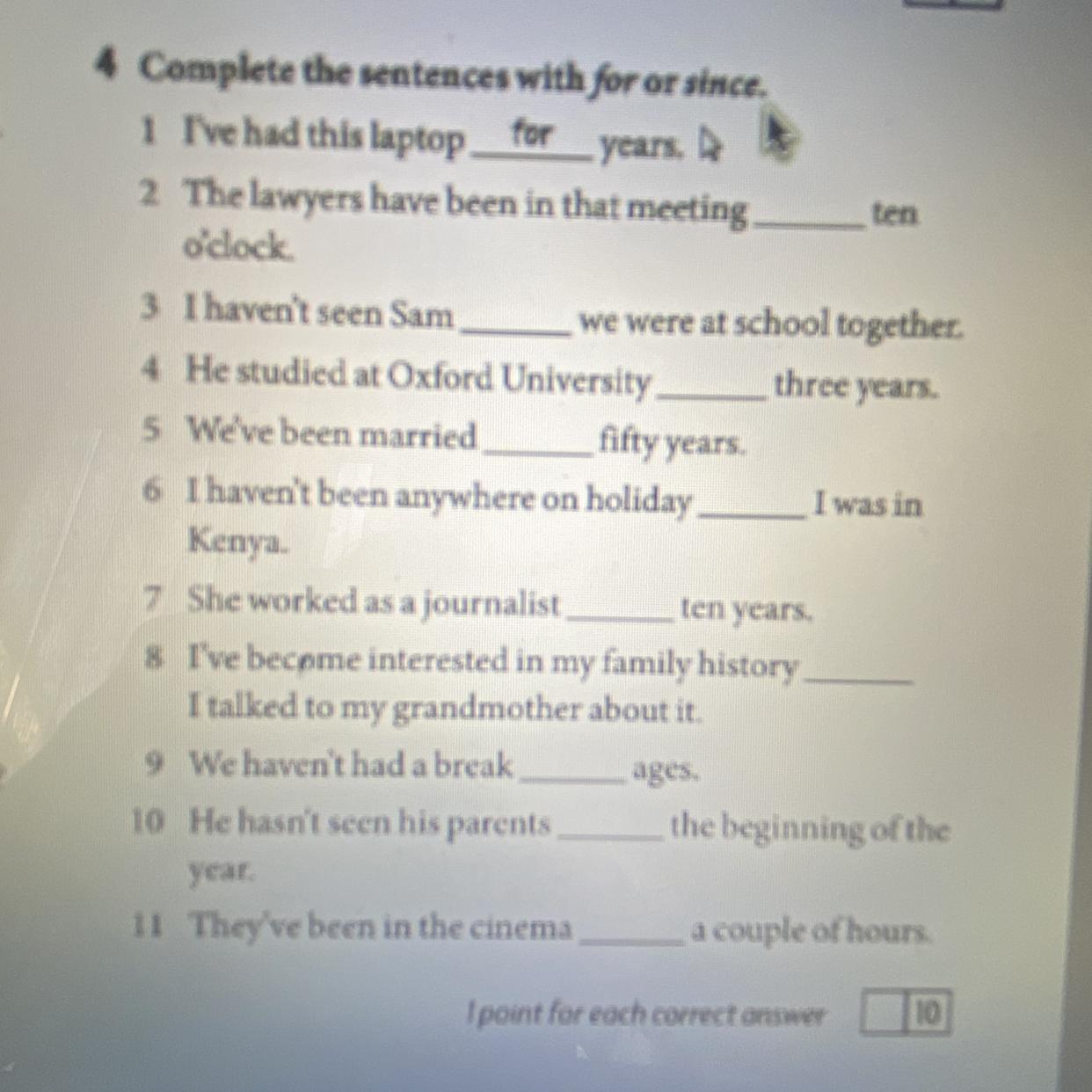 2.since 3.since 4.for 5.for 6.since 7.for 8.since 9.for 10.since 11.for