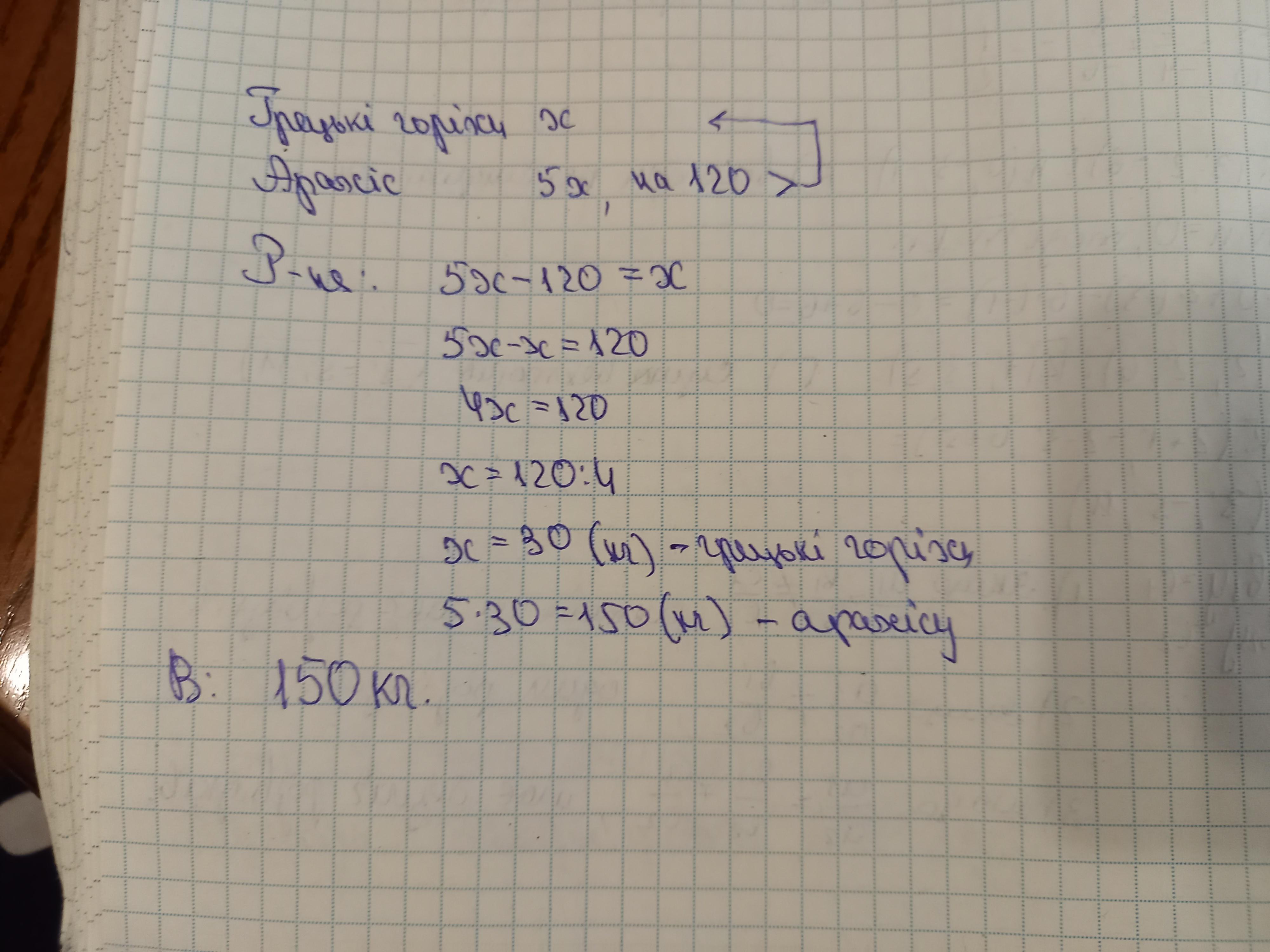 кілограмів арахісу придбали для кондитерської фабрики, якщо його більше на 120 кг, ніж грецьких