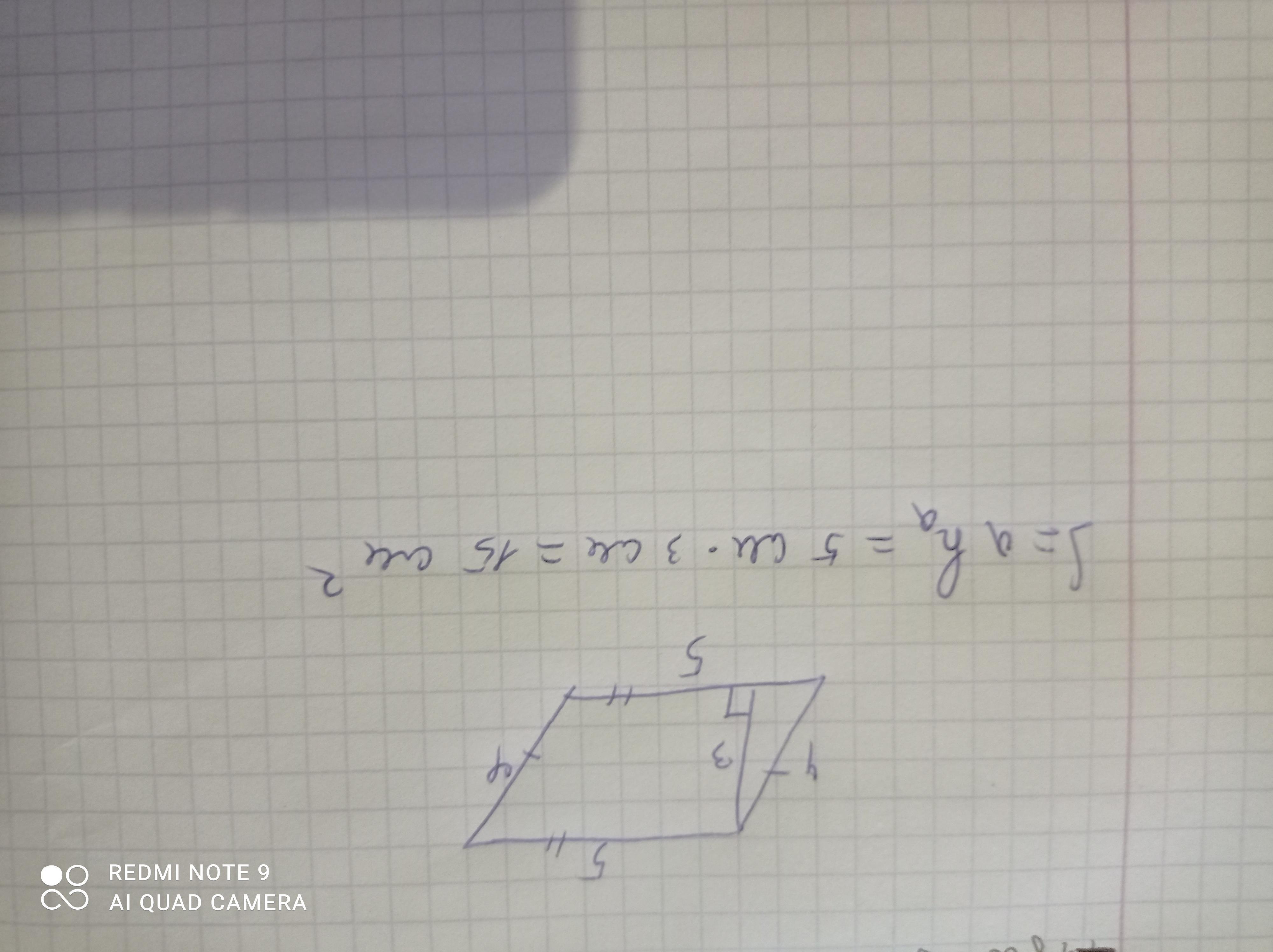 В параллелограмме стороны 4 см и 5 см, а высота 3 см. Найти площадь параллелограмма.