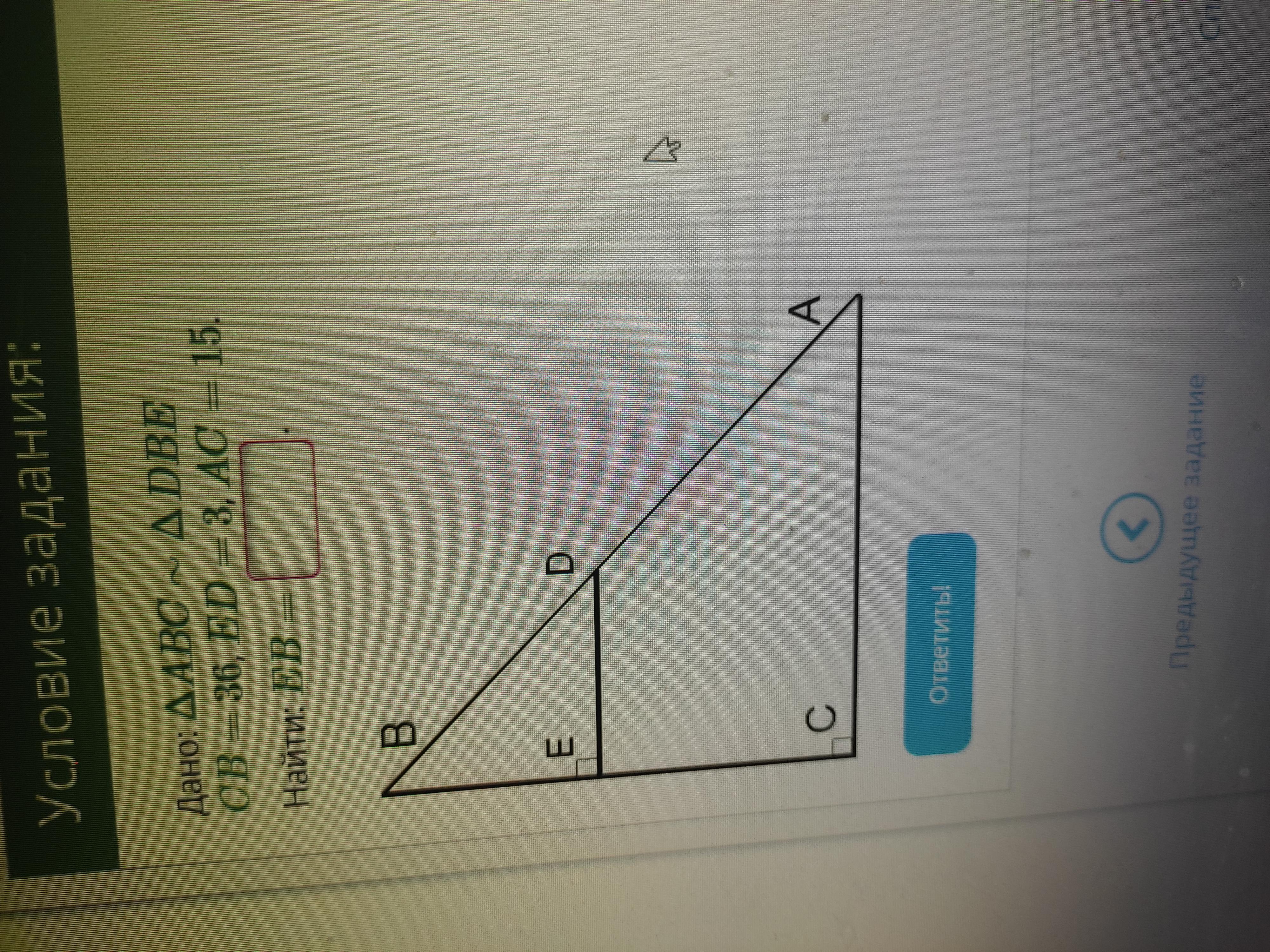 EB = BC · ED / CA = 36 · 3 / 15 = 108 / 15 = 7,2 см