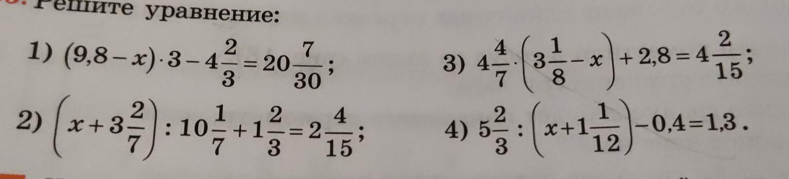 (9,8 - х)*3 = 20. 7/30 + 4. 2/3