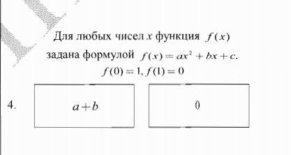 Можно вспомнить или быстро получить, что значение квадратичной функции в точке х=0 равно свободному члену, а в точке х=1 равно сумме коэффициентов: