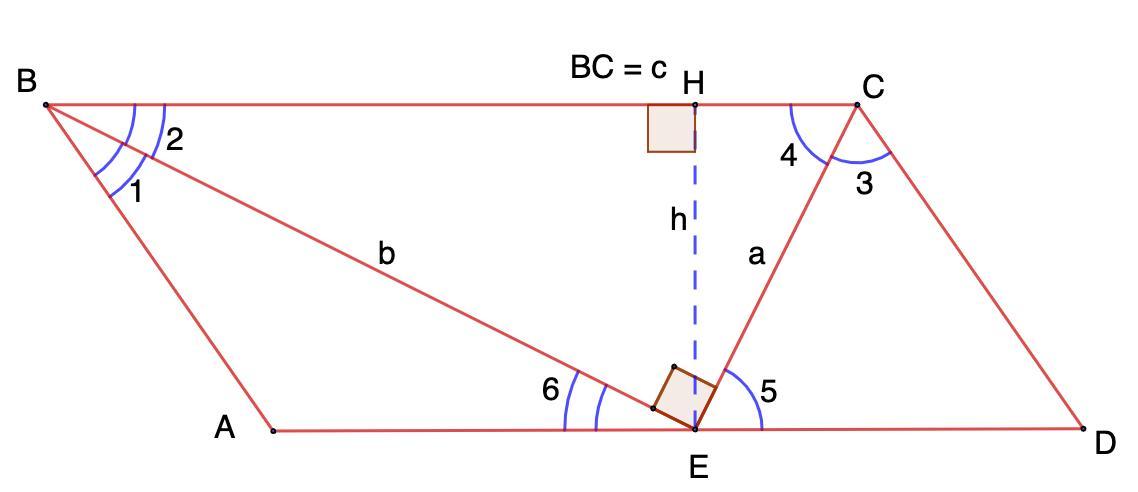 Для удобства обозначим: ВЕ = b; CE = a; BC = c; EH = h.