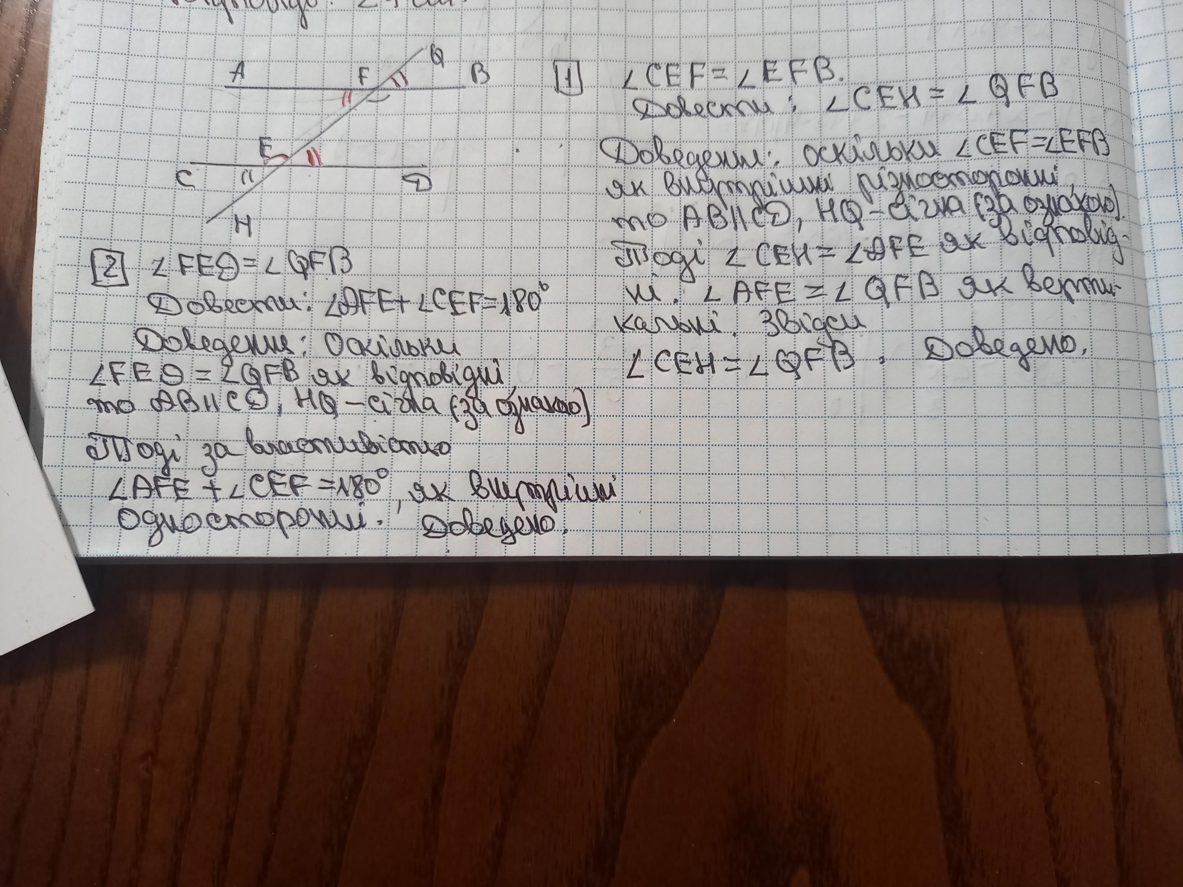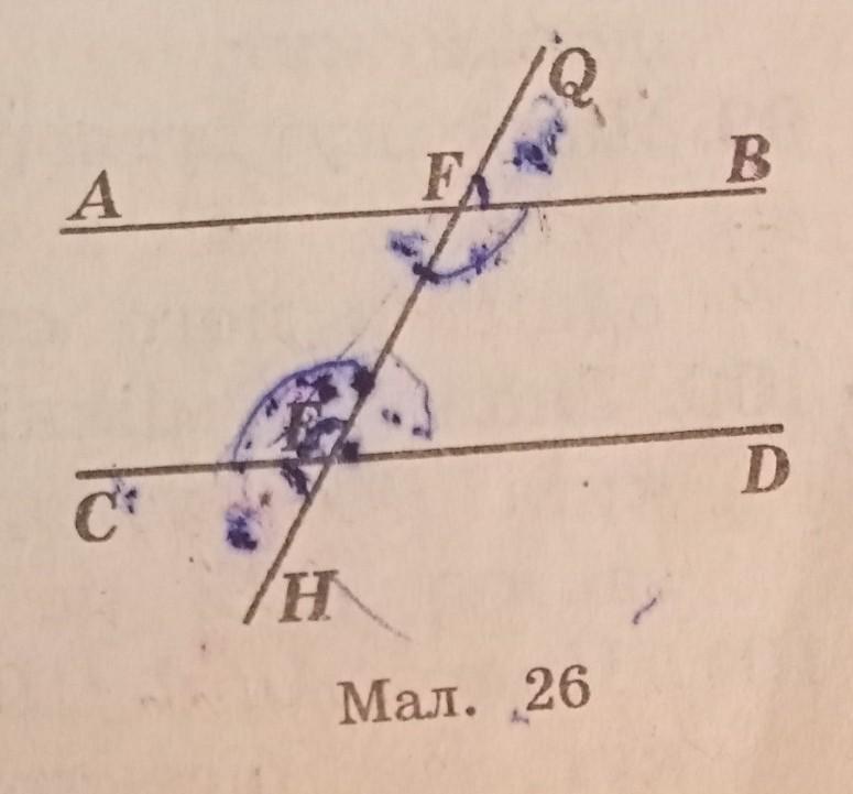 89. Розв'язати задачі (мал. 26): 1) Дано: ZCEF = ZEFB. Довести: ZCEH ZQFB.