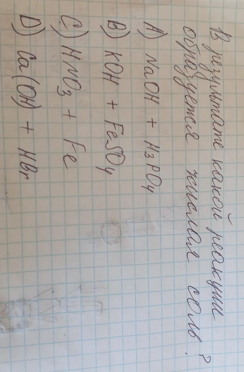Все зависит от пропорции, в вариантах ответа у тебя 1:1, чтобы получилась средняя соль нужно взять 3 моль щёлочи 3NaOH+H3PO4= Na3PO4+3H2O. То есть ты видишь пропорцию 1:3. Но в твоем задании, как я говорила идёт недостаток щёлочи, а значит и в результате мы получим избыток кислоты, NaOH+H3PO4=NaH2PO4+H2O