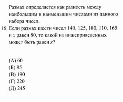 Если размах шести чисел 140 125 180 110 165 и х равен 80 то какой из нижеприведенных может быть равен х?