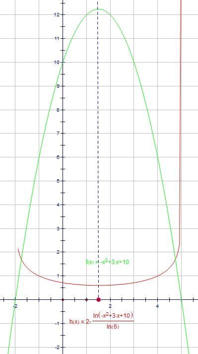 y=2-log6(-x^2+3x+10) найти точку минимума функции
