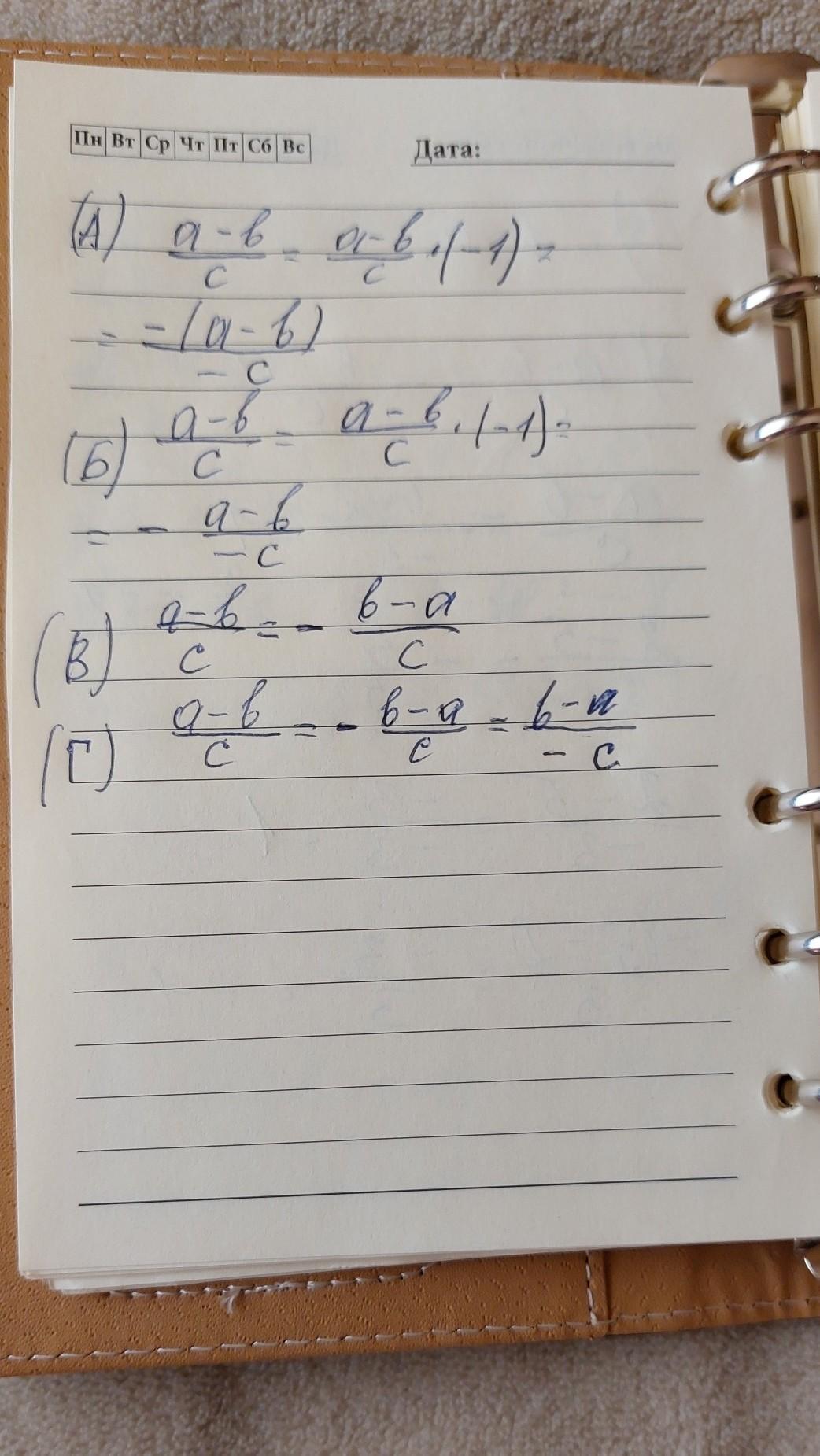 Д) не может быть равно выражение ( a-b)/с