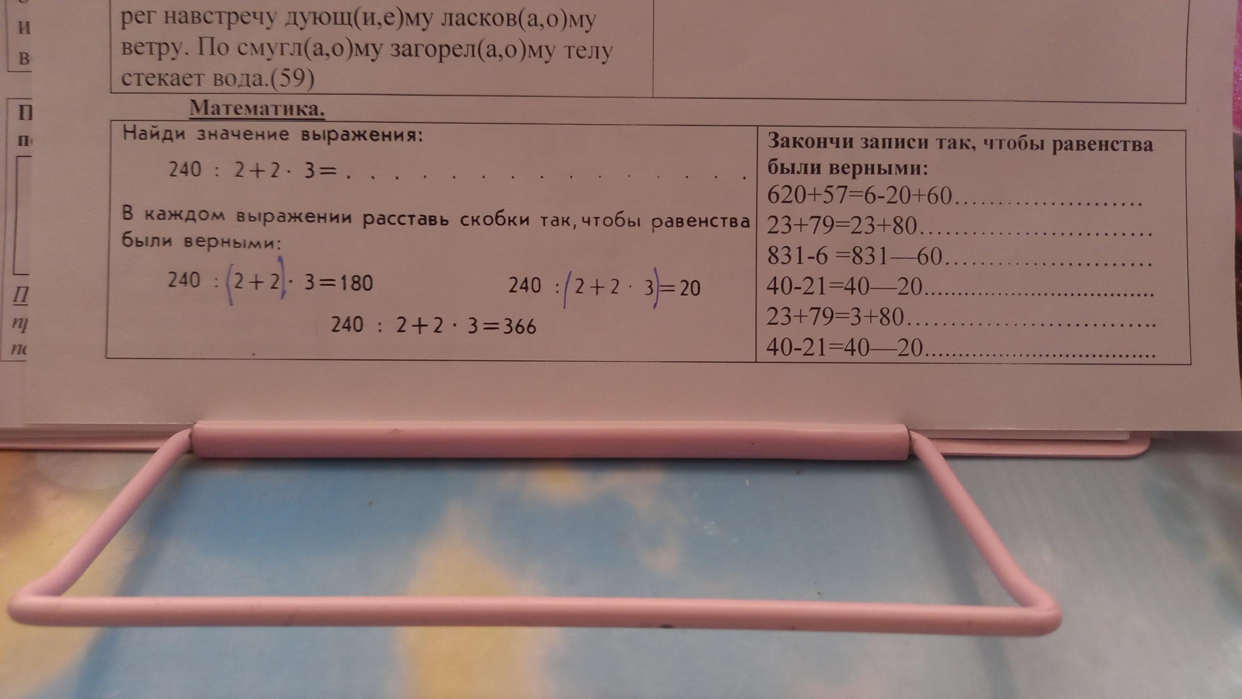 240 : (2+2) • 3 = 240 : 4 • 3 = 60 • 3 = 180
