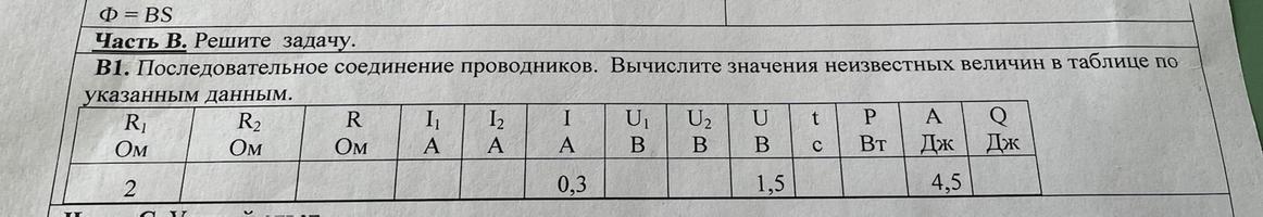 Последовательное соединение проводников. Вычислите значения неизвестных величин в таблице по указанным данным.