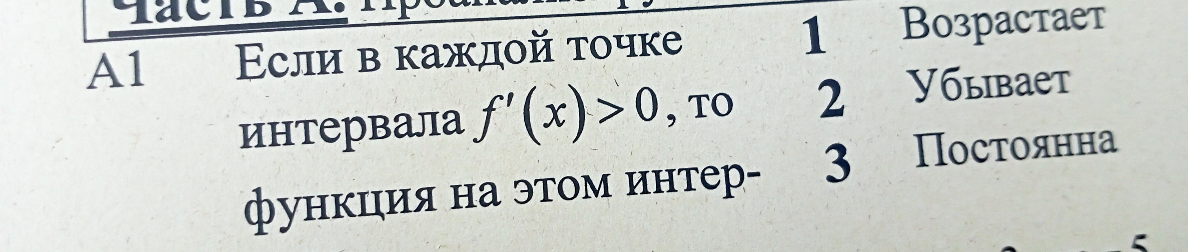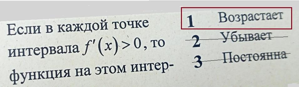 1) Если f ’( x ) > 0 в каждой точке интервала, то функция f ( x ) возрастает на этом интервале.